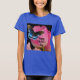 Uma bela foto de uma borboleta azul e flores cor-de-rosa, é mostrada nesta camiseta para Dia de as mães. Esta camiseta azul tem a mensagem "Dia de as mães feliz" impressa nela e está disponível em seis tamanhos diferentes. Uma camiseta doce para a mãe no seu dia especial!