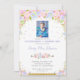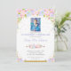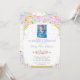 Adorável primeiro aniversario Floral e Convite para o Dia de Nomeação com lindas flores rosa e lilases aquáticas. Um design floral correspondente incluído. Personalize este convite floral de excelente com o nome, a idade e os detalhes da festa do seu filho de forma fácil e rápida, basta pressionar o botão personalizar para adicionar uma foto, reorganizar e formatar o estilo e a posição do texto. c) O Feliz Cat Studio