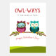 Deseje ao seu amigo um Feliz dia de os namorados ilustrativo com essa bela design, com a mensagem "OWL-WAYS. (É quanto tempo seremos amigos.) feliz dia de os namorados!" Design inclui ilustração fofa de duas corujas sentadas num galho com acentos de verde e coração vermelho. Dentro tem esta mensagem totalmente editável, "Estou celebrando o presente de sua amizade e esperando que você saiba o quanto você é amado e apreciado! feliz dia de os namorados!"
