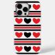 Corações Pretos Vermelhos Stripes Dia de os namorados de Padrão - Matriz iPhone 14 Pro Máx.
