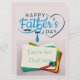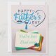 Esta placa de Dia de os pais clássica apresenta um simples design com um grande coração azul e uma ilustração de gravata. O texto diz "Feliz Dia de os pais ao Melhor Pai de Sempre." É uma maneira sincera de dizer ao Pai o quanto você se importa.