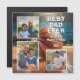 Placa Magnet Do Dia de os pais De Colagem De Fotografias Do Melhor Pai Moderno Ever 3. Este cartão tem 3 fotos, tipografia moderna e moderna, nomes e anos. As fotos e o texto estão no fundo com bola de basquete no campo. Adicione seus nomes, 3 fotos e o ano.