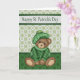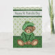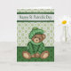 Deseje a alguém em geral uma Rua Feliz. Dia de Patrick com um cartão com um urso bonito vestindo um suéter e um chapéu em um verde com fundo de vergonha. Design por Laurie Schneider/Elements by Digital Designs por Elena/Diana'z Designz