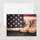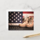 Dia do memorial lembra e honra a bandeira americana e botas militares tag de cachorro camuflado estrelas e listras cartão postal.