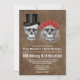 Dia dos Convites para Casamento de Casais do Crânio Morto - apresenta um fundo vintage impresso com um casal do crânio formado em um noivo e noiva. Consulte a coleção correspondente nesta página.