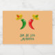 Esta maravilhosa folha de rótulos de mini garrafa de licor do Dia dos Mortos apresenta um par de chilis, um chili vermelho e um chili verde. Ambos têm olhos pretos e bocas cor-de-rosa. Cada Chili está vestindo um chapéu sombrio que tem um crânio de cor oposta ao dos chili em comemoração ao Dia Mexicano do Festival dos Mortos, Dia De Los Muertos. O sombrero também contém três flores com pétalas vermelhas e verdes alternadas representando a bandeira do México. Há texto personalizado para que você possa incluir uma mensagem.