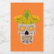 Este maravilhoso conjunto de mini etiquetas de vinho apresenta uma imagem design gráfica de um Dia Mexicano dos Mortos (Dia de los Muertos) inspirado no crânio. O crânio é uma cinza pálida e está vestindo um sombrero amarelo. Ela tem dentes de ouro e girassóis mexicanos, também chamados de titonias em vez de olhos. O sombrero tem um cacto e está coberto por padrões de espiral bonito e pimentões-do-sul e vermelhos. O próprio crânio está coberto por flores bonito e coloridas de diferentes tipos.