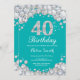 Convite do aniversário de 40 anos. Fundo do Aqua de turquesa da cerceta do diamante do cristal de rocha da cerceta e da prata. A festança elegante do aniversário convida. Aniversário adulto. Aniversário das mulheres. Aniversário dos homens. Para uma personalização mais adicional, clique por favor "personalizam-no" botão e usam-nos nossa ferramenta de design para alterar este modelo.