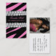 Faça uma grande impressão com este cartão de visita elegante. Caracterizando uma fileira dobro dos diamantes, e o impressão cor-de-rosa e preto da zebra, este os cartões de visitas são certos criar um stir. Em vez do tiro tradicional da coroa, use um tiro do perfil para adicionar mais caráter!