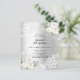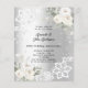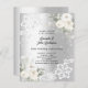 Para um elegante e romântico 60º aniversário de casamento. Um fundo de aparência pura prateada decorado com flores brancas, rosas, diamantes falsos e rendas brancas. Personalize e adicione seus nomes e detalhes. 1 folha = 1 convite impresso de borda a borda.