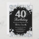 Convite para aniversário de 40 anos. Fundo do Quadro do Diamante do Silver Rhinestone. Convidado Elegante Birthday Bash. Preto e Branco. Aniversário Adulto. Mulheres Aniversário. Homens Aniversário. Para mais personalização, clique no botão "Personalizar" e use nossa ferramenta de design para modificar este modelo.
