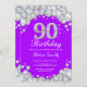 convite do aniversário do 90. Diamante roxo e de prata do cristal de rocha. A festança elegante do aniversário convida. Aniversário adulto. Aniversário das mulheres. Aniversário dos homens. Para uma personalização mais adicional, clique por favor "personalizam-no" botão e usam-nos nossa ferramenta de design para alterar este modelo.