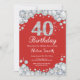 Convite do aniversário de 40 anos. Diamante vermelho e de prata do cristal de rocha. A festança elegante do aniversário convida. Aniversário adulto. Aniversário das mulheres. Aniversário dos homens. Para uma personalização mais adicional, clique por favor "personalizam-no" botão e usam-nos nossa ferramenta de design para alterar este modelo.