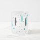 Os diamantes retros desta turquesa e a caneca do vidro de fosco de Starbursts são uma tomada nova em um estilo do vintage. Caracteriza starbursts kitschy, pretos em bolinhas de turquesa, cercar formas geométricas, de turquesa e de carvão. Personalize a cor do fundo neste produto moderno do meio século se você está sentindo audaz, ou deixe-lhe o branco se subdued é mais seu estilo. Você é certo apreciar nossa homenagem aos anos 50. Compre isto hoje e seja o gato o mais fresco em seu bloco.