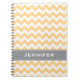 Esta viga amarela e cinzenta da luz do sol moderna bonito e à moda listrou o cobrir do caderno espiral com alternar amarelo e o teste padrão branco da listra do ziguezague pode ser personalizado com seu nome no design costurado cinza IMPRESSO da fita do olhar. Projetado por Chrissy H. Estúdio, LLC. Todos os direitos reservados.