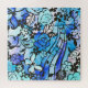 Música, flores e folhas compõem esta vibrante pintura que apresenta um padrão floral com uma mistura de tons azuis e contornos pretos. Diferentes tipos de flores e folhas, borboletas e notas musicais são bem acondicionadas para criar um design animado e decorativo.