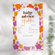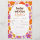 Um cartão de conselhos e previsões retrô para bebês para combinar com nossos convites "Hello Baby Retro Daisy Laranja & Roxo Baby Shower". Veja a coleção vinculada nesta página para itens correspondentes. Este design apresenta um fundo com padrão floral descolado com uma sobreposição oval branca no centro. O padrão de margaridas florais é em uma ousada paleta de cores hippie dos anos 70, laranja e amarelo. Dentro da moldura oval, há espaço para os convidados escreverem suas previsões de nascimento, previsões de semelhança e conselhos para os novos pais.