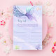 "Uma Sereia Doce está a caminho", "Sob o Mar", a festa de chuveiro de bebês de menina. Matizes roxos e azuis pastéis de aquarelas, com rabo de sereia, peixe palhaço e corais.