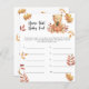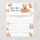 Celebrar com esta festa de chá de fraldas do ursinho de outono! Ursinho de pelúcia bonitinho com uma abóbora de outono nas patas do outono. No verso do cartão estão as folhas do outono. Itens correspondentes disponíveis.