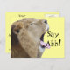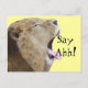 Um postal divertido, único e com atenção, ganhando graça com uma foto original de um leão macho com sua boca bem aberta, e sua língua ficando para fora com "Diga Ahh!" em texto alto e ousado, explodindo bem próximo a boca aberta do Rei da Selva, mostrando seus dentes grandes. Um cartão postal perfeito para os doentes para os consultórios dentários para os avisos de consultas dentárias e excelente para os consultórios veterinários. Excelente também para outros consultórios médicos. Perfeito para consultórios pediátricos, até mesmo veterinários. Coloque facilmente suas informações personalizadas na parte traseira~ exclua tudo se nenhuma for necessária. A cor de fundo amarelo claro em ambos os lados da placa pode ser facilmente alterada para qualquer cor. Basta clicar em "Personalizar" e, em seguida, "editar" e "fundo" para mudar para qualquer outra cor clara.