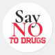 Design apresenta palavras vermelhas "Diga não às drogas" em um fundo branco. Este adesivo seria bom para as escolas ou outros locais de pessoas jovens motivá-las a dizer não à droga.