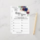 Diga que o jogo de versão em inglês e espanhol do Spice chá de panela está incluído (frente e verso). Mude Bride para Name (Nome) no modelo para as versões em inglês e espanhol. Para obter mais personalização (alterar o número de especiarias e qualquer outro texto, cor da fonte, estilo da fonte ), clique em personalizar, role para baixo e clique no link "clicar para personalizar ainda mais". Como jogar: tenham dez especiarias diferentes, os hóspedes irão anotar seu palpite sobre cada especiaria, cheirando e olhando apenas, a pessoa com as respostas mais corretas ganha!