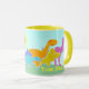 Diga Rwar! Caneca conhecida dos dinossauros. Uma família bonito do dinossauro com Diplodocus amarelo, o ovo de dinossauro cor-de-rosa do bebê, o Stegosaurus azul, o Diplodocus alaranjado, um Triceratops amarelo doce e os dinos roxos dos desenhos animados de T-Rex em uma paisagem ensolarada com o sol que brilha em um bebendo pessoal do céu azul agridem com seu nome. Adicione seu nome para personalizar seus dinossauros do unqiue agridem-no e fazem-n especial! Esta caneca do dinossauro é inteiramente customizável, adiciona seus imagens e textos. Um muito legal diz "Rawr!" caneca pequena feliz do dinossauro com seu nome nele!