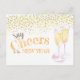 Diga aplausos para os copos de champanhe de Ano Novo. Bonito mão pintada com aquarela de champanhe cheia de ouro amarelo Champagne diz aplausos aos convites do estilo cartão postal da festa de Ano Novo. Personalize com os detalhes do seu partido de Ano Novo colocados em um carimbo e escreva no seu endereço de destinatário. Arte com aquarela original e design por Sarah Trett www.sarahtrett.com para www.mylittleeden.com no zazzle.