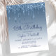 Este convite de aniversário 18º da tendência apresenta uma borda brilhante azul de falso azul brilhante e fundo azul ombre. As palavras "18º Aniversário" e o nome do convidado de honra aparecem no script de escrita manual azul casual, com o resto do texto personalizável na fonte azul sans serif. O mesmo design de gota a gota azul aparece no verso.