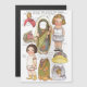 Bonecas de papel do vintage viagem do Dingle da zorra da "em todo o mundo" em um cartão magnético.