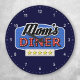 Todas as casas precisam de jantar de Mães na cozinha. Este relógio engraçado celebra o cozinhar da mãe, e faz um presente de excelente para qualquer ocasião. Mostrado com um fundo azul escuro. Isso pode ser facilmente personalizado para se adequar à decoração da sua cozinha.