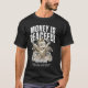 Uma camiseta gráfica preta na moda com um design ousado com a frase "DINHEIRO É PACÍFICO", juntamente com uma representação artística de um berço riscando rodeado de joias de dinheiro e ouro. A camisa também inclui o texto "SUA MARCA" e "DINHEIRO NÃO É TUDO MAS TUDO PRECISA DE DINHEIRO." Perfeito para aqueles que apreciam a beleza, a moda das declarações.