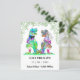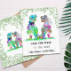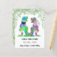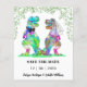 Alegre-se com este engraçado dinossauro temido casamento T Rex noiva e noiva com folhagem de floresta. Fácil de personalizar com os nomes da noiva e do noivo e a data do casamento. Colorida coloração d'água T Rex noiva e ilustrações nobres com tipografia moderna. Arte original única da artista Catherine Sweetman