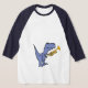 Dinossauro azul engraçado bonito do t-rex dos desenhos animados que joga o design da camisa ou da camisola da trombeta. É divertimento e cheio da personalidade e pode adicionar o texto feito sob encomenda ao pedir.