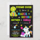 Stomp Chomp Growth e Rawr! Chegue para um aniversário mágico! Este convite de aniversário para dois filhos é para a festa de mágica Dino-mite combinada! Ele apresenta um dinossauro verde e um pequeno unicórnio mágico com cabelo arco-íris. Este convite funcionará perfeitamente no primeiro aniversário e em qualquer idade! Personalize facilmente textos neste modelo de convite para torná-lo exclusivo.