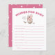 Um chá de fraldas do tema do dinossauro bonito deseja um cartão de bebê com triceratops cor-de-rosa a eclodir de um ovo. Os textos são editáveis. Atividade perfeita para jogar durante o chá e definitivamente será um excelente!