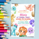 3º Jurássico Mundo Dinossauros Aniversário Modelo de Convite é perfeito para festas de aniversário femininas. Os dinossauros temidos convidam são cheios de designs engraçados e bonitos como animais coloridos. Aniversários de criança são especiais, e este convite pode ajudá-lo a fazer uma festa de aniversário memorável.