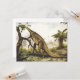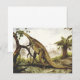 Ilustração antiga de um animal selvagem herbívoro pré-histórico, o Plateossauro. Um dinossauro comedor de plantas do período Triássico tardio comendo folhas em uma paisagem de selva.