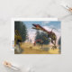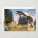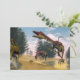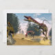 Dinossauro Compsognathus caçando uma lagartixa em uma lagoa com árvores calamitosas por dia - renderização 3D