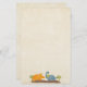 Papel de papelaria com um design bonito com 2 dinossauros. Um brontossauro e um triceratops. Criado com aquarelas.