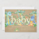 Adorável convite neutro para bebês dinossauros com dinossauros bonitos colocados num fundo de kraft tropical divertido. Um convite bonito para um chá de fraldas neutro em termos de gênero. Visite nosso compro para ver este convite em outras cores.