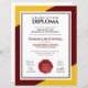 As faculdades, universidades, segundos graus e institutos de mais alto podem adicionar sofisticação aos diplomas de graduação com este design moderno, contemporâneo, que contém uma elegante inscrição em vermelho real, ouro e fundo branco. Personalizar com os nomes dos alunos e da família, o nome da faculdade, o nome da escola/faculdade/universidade, o local e a data da licenciatura, até quatro (4) signatários e o logotipo ou slogan acadêmico. Cores e tipos de fonte podem ser modificados conforme desejado. Design © W.H. Sim, Todos os Direitos Reservados. Mais informações em zazzle.com/expressionsoccasions