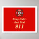 Esta poster é decorada com a Cruz Maltesa de Emergência contra Incêndios e as palavras "Manter Calmo e Discar 911."