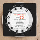 Trata-se de estilo com este convite de aniversário de 70 com estilo retrô, com um rosto preto de telefone rotativo. Todos os detalhes do convite aparecem na parte branca do rosto do telefone e do aniversário e 70 aparecem em vermelho. Este é um convite divertido para um 70. Direitos autorais