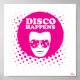 Poster com design gráfico do homem, com óculos cor-de-rosa afro e sol. Dentro de seu coração estão as palavras "DISCO ACONTECE" Produto de Arny L. Designs.