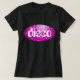 T-shirt com uma divertida e divertida estilização estilizada "azulejo mirror look" (aparência de espelho da discoteca) escrita em tons de rosa e branco e "disco" escrita num texto retrô. Pode ser usado como um fundo para o seu próprio texto, imagens e ideias. Disponível em todas as opções de estilo. Observe que esta é uma imagem de arte digital impressa, ela não brilha ou contém espelhos reais ou brilho.