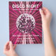 Ter uma discoteca ou uma festa de dança e ter que fazer protótipos? Crie um panfleto de promocional de música inspirado na discoteca ou evento de dança com este design de disco roxo e rosa! Bola de Disco no meio com fundo rosa e estrelas cintilantes! Editar o texto, adicionar ou eliminar texto! Crie o seu panfleto personalizado!