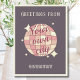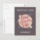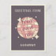 Cartão postal com o nome da sua cidade na bola de disco rosa. Dica de design para Personalização: para cidades com nomes curtos, comece com uma linha de vazio antes de colocar o nome na linha do meio para garantir que ele apareça centrado. Para nomes de cidades com mais ou mais palavras, utilize 3 linhas usando hífens ou adicionando "cidade" ou "nome de estado" para manter o design balanceado.