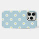 Ilustração de margarida em um design de padrão de superfície em um fundo azul pálido.
