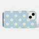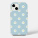 Ilustração de margarida em um design de padrão de superfície em um fundo azul pálido.